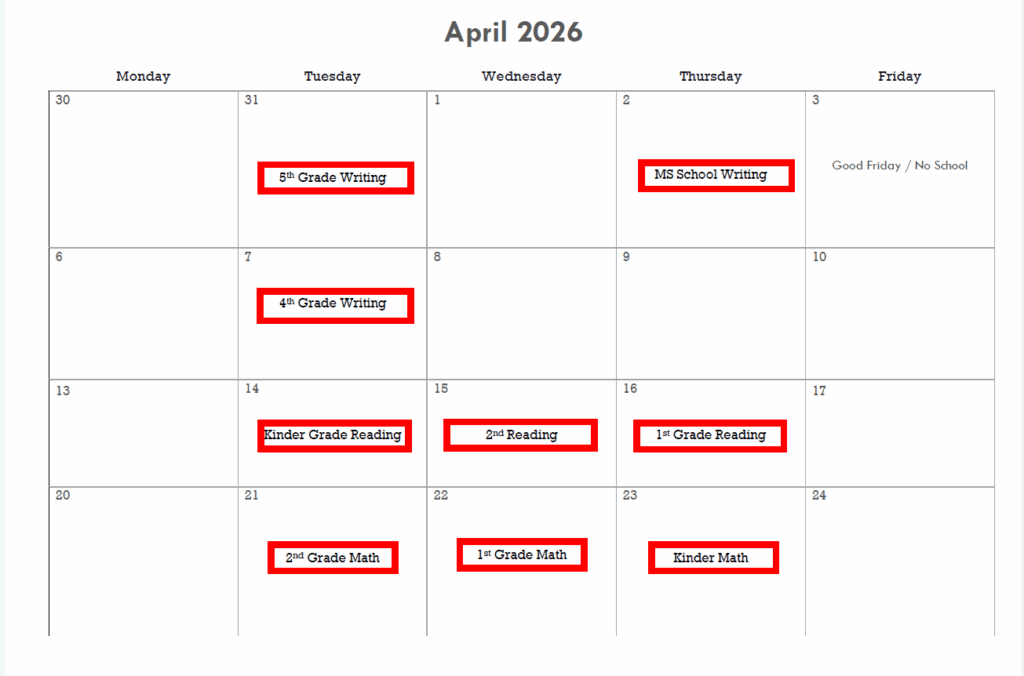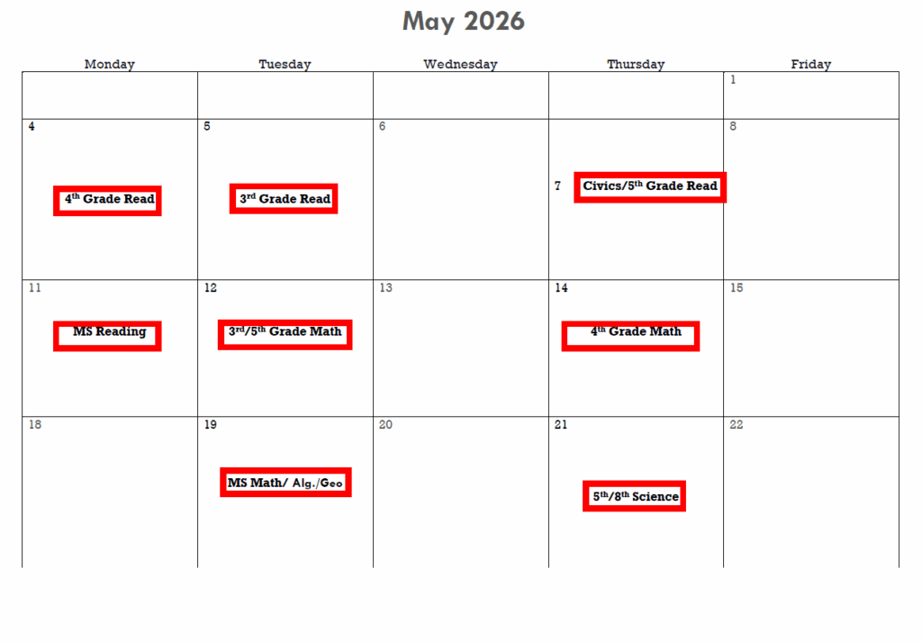Testing Calendar Revised
